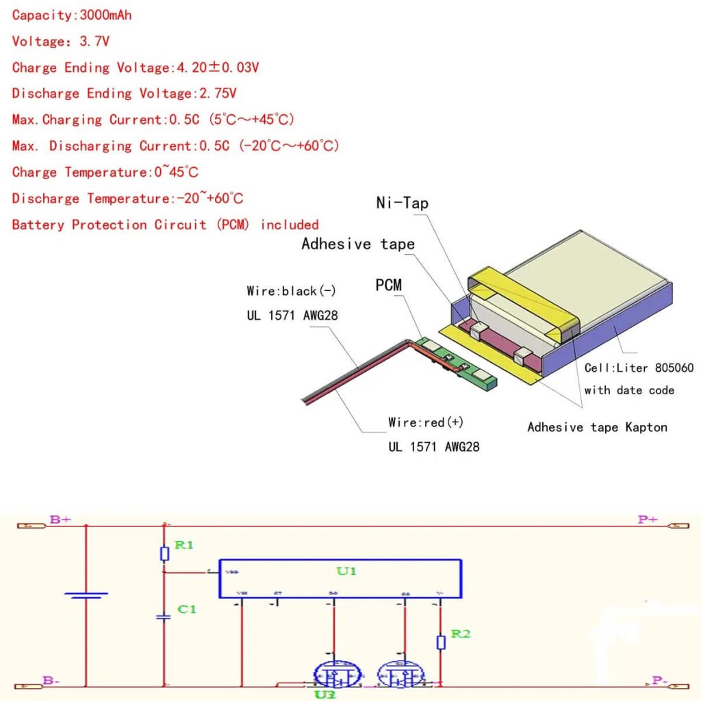 | Kapacitet: | 3000 mAh | Charge Voltage: | 3.7-4.2V |
